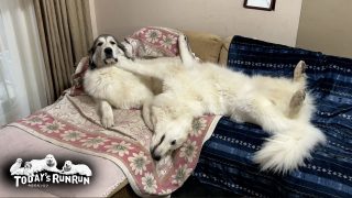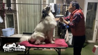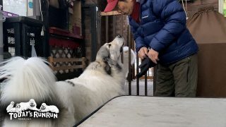 犬舎からは早く出たいけど、お父さんがいるのでついつい戻ってしまい、なかなか犬舎から出ないアランとベルとリリーです。Alain, Belle and Lily want to get out of the kennel quickly, bu...