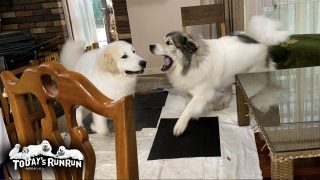 自分達が超大型犬の自覚が全く無いベルとリリー。室内でも構わず大暴走しています!Belle and Lily don't realize they are giant dogs, and they run around the house w...