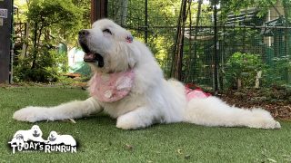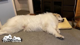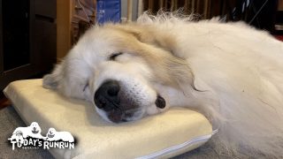 お父さんのポカポカ小豆温灸を気持ちよさそうに受けるルンルン。ウトウト眠ってしまいました。Father used azuki bean moxa to warm RunRun's body. RunRun slept very comfort...