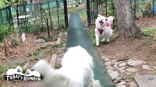 お父さんが相手だとついてこれるペースでのんびり逃げるアラン。軽トラックには厳しいけど、お父さんには激甘な対応をするアランです。 Alain runs away very slowly when Father is his opponent....