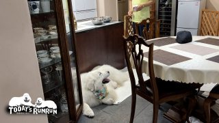最近雨の音が苦手なアラン。お父さんのクローゼットに隠れると安心するようです。Alain would take refuge in his father's closet even in light rain.元々水があまり好きではないアラン...