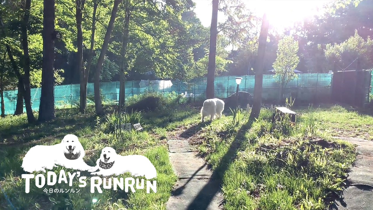 5月も終わりに近づきルンルン地方も夏へ向かっています。山は一斉に緑になりセミも鳴き始めました。太陽が上がると朝露で若葉がキラキラ光り、ルンルンとアランも朝日に照らされまるで光っているようです。