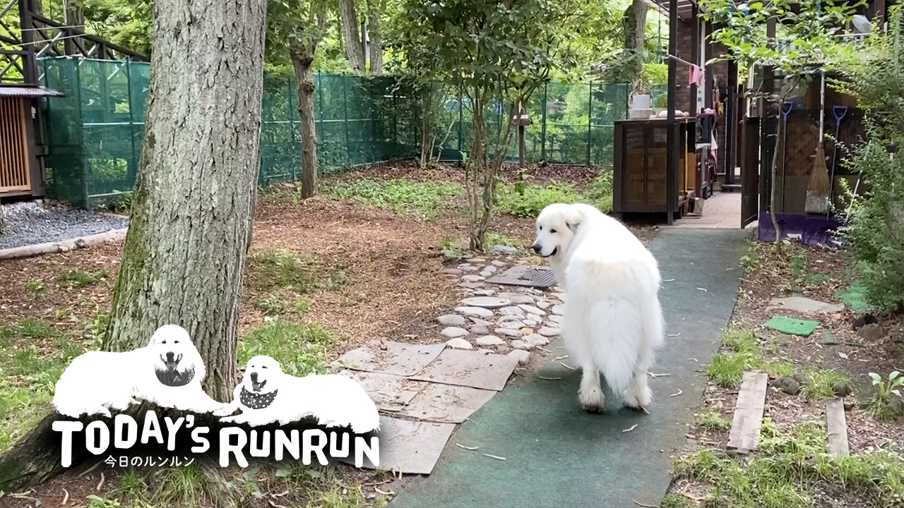グレートピレニーズはお尻が大きいので歩くと大きなお尻がユサユサと大きく揺れます。ルンルンも同様に歩くとお尻が左右に動きます。