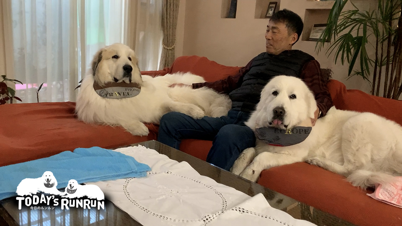 ルンルンとアランの朝はお父さんと一緒にはじまります。朝お父さんが起きてルンルンとアランを庭に出します。ルンルンとアランは早朝はドッグランで番犬をします。その間にお父さんはルンルンとアランの飲水の入れ替えや、リビングのストーブに火を入れます。