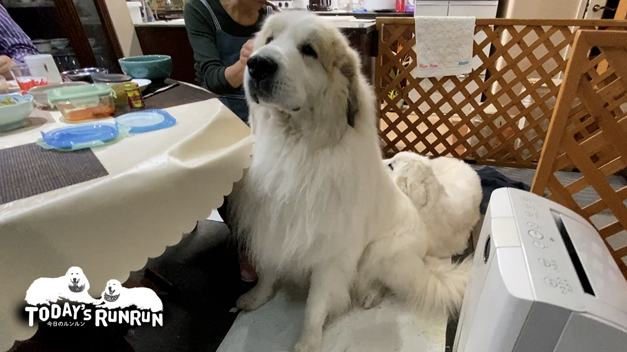 グレートピレニーズは毛皮が2重になったダブルコートという毛質です。毛も長いため毛が濡れても体までは濡れず体はガードされているようです。ダブルコートの毛は乾かすのがとても大変なので、雪が塊でついた時は早めにとってあげないと後が大変です。