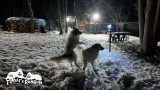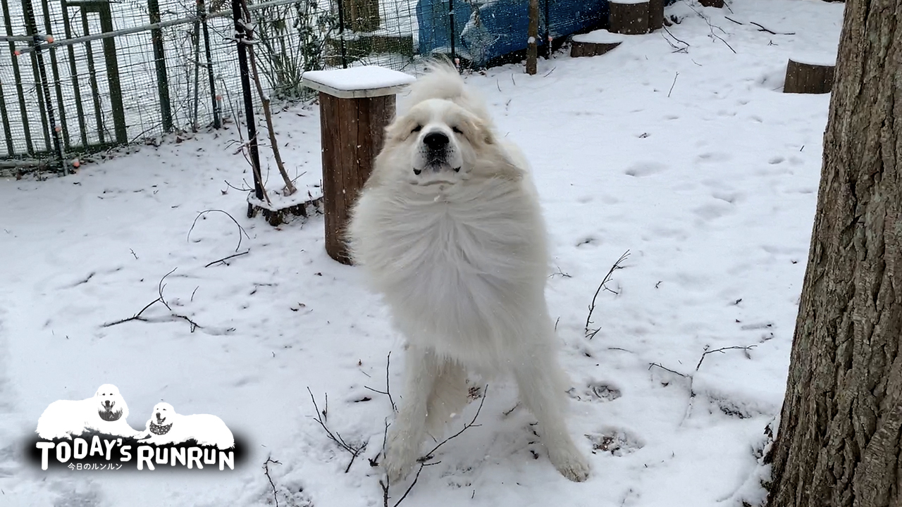 お父さんがブロアーで雪を飛ばしていると何やら興味津々のアラン。お父さんがブロアーで風を当てると走り回って遊びました。