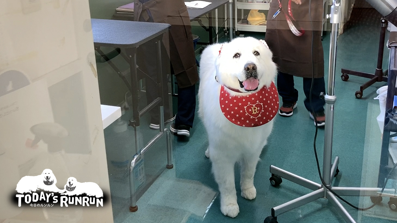 ヒート(発情期)が一段落したのでシャンプーへ行き真っ白になったルンルンです。シャンプーしたてだとアランに絡まれるので、もう一日様子をみて山の家に帰ります。