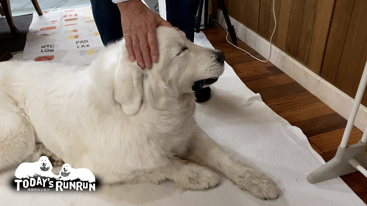 一方でアランは6歳の全盛期。まだまだ遊びたい年頃でルンルンと遊びたがります。ルンルンもアランんの遊びにはつきあいますが、流石に体格が違いすぎるため高齢のルンルンには体力的に少し厳しそうです。アランはグレートピレニーズとしては大柄で、ルンルンはグレートピレニーズとしては小柄です。今までアランのじゃれ合いにルンルンが付き合えていたのが凄かったのかなと思います。