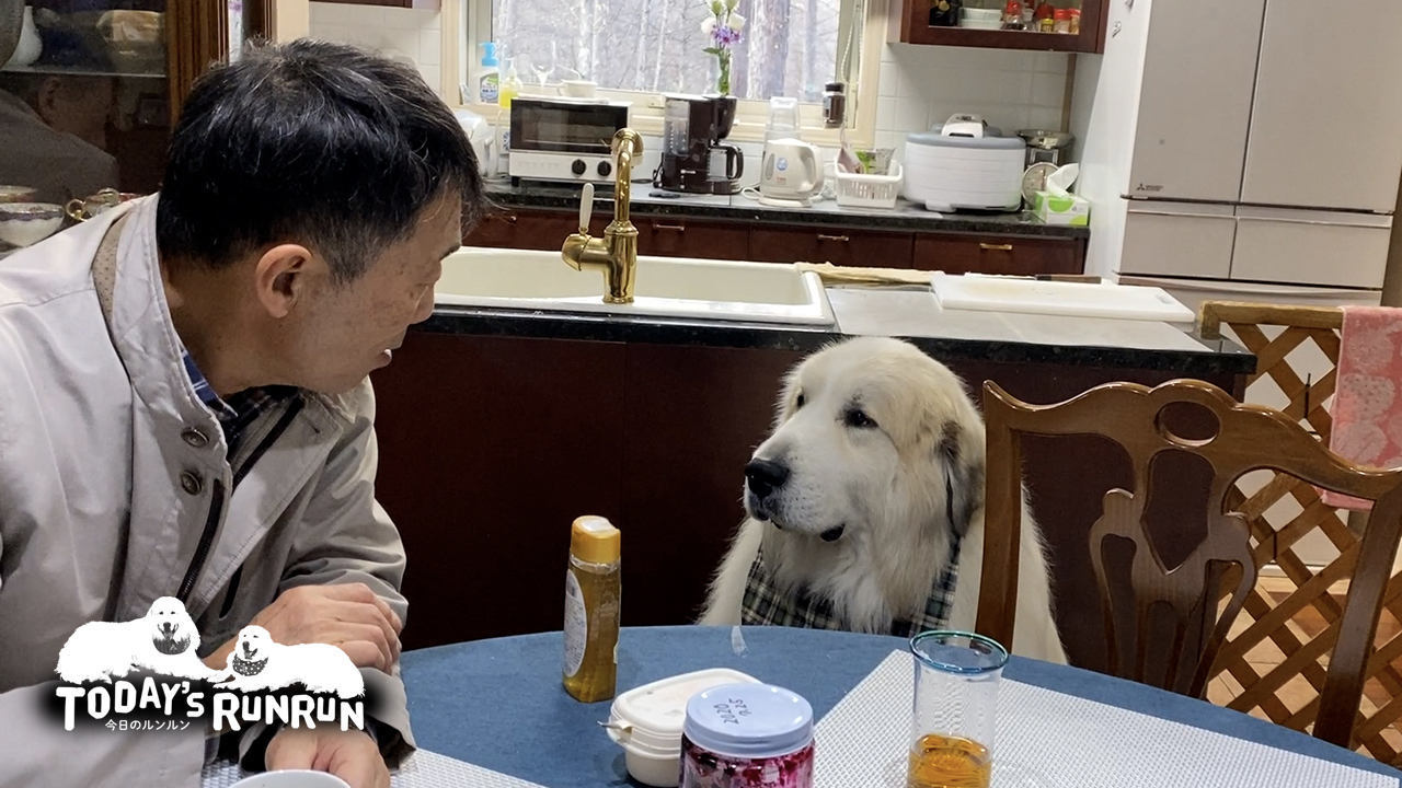 オヤツねだりが上手なルンルンはリビングに人間がいるとオヤツをねだります。アランはルンルンが交渉に成功した時にいつもおこぼれでオヤツをもらうのですが、ルンルンが不在なので自分でオヤツ交渉をしなければなりません。