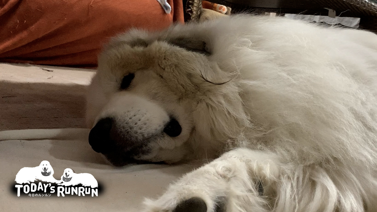 ルンルンとアランは1日の中で留守番をしている時間もあります。人間が働いている間は山の家か町の家でお留守番をしています。留守番の様子は監視カメラで常時見れるようにしてあります。留守番中はほとんど寝ていますが、お父さんの帰宅には敏感に気づき必ずお出迎えをします。