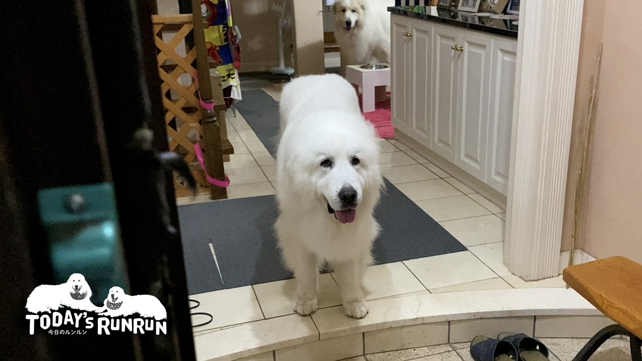ルンルンとアランは人間が帰宅すると音で気づくようで、人間が玄関の扉を開ける頃には扉の向こうで待っています。お留守番をした後はご褒美のおやつをもらうのがお決まりで、人間を出迎えた後はまっすぐキッチンへ向かいます。