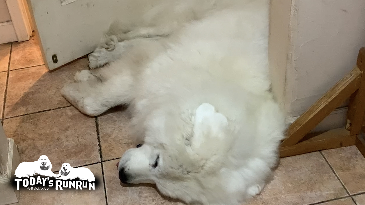 お父さんが庭で作業をしているとお父さんが見える場所に陣取り番犬をしたり、ずっとお父さんの後を付けて付いて回ったりします。グレートピレニーズはもともと外的から羊を守るための護衛犬。ルンルンとアランはもしかしたらいつもお父さんをガードしているのかもしれません。