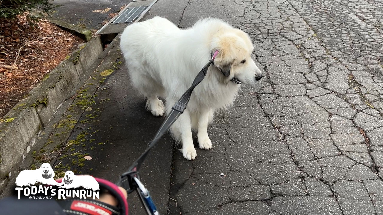 いつもはお父さんと行くお散歩も息子(格下)のリードとなると態度が少し変わるアラン。ルンルンは比較的気にしていないようでお利口に歩きますが、アランは時折自己主張を見せてリードを引っ張ってわがままをします。