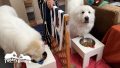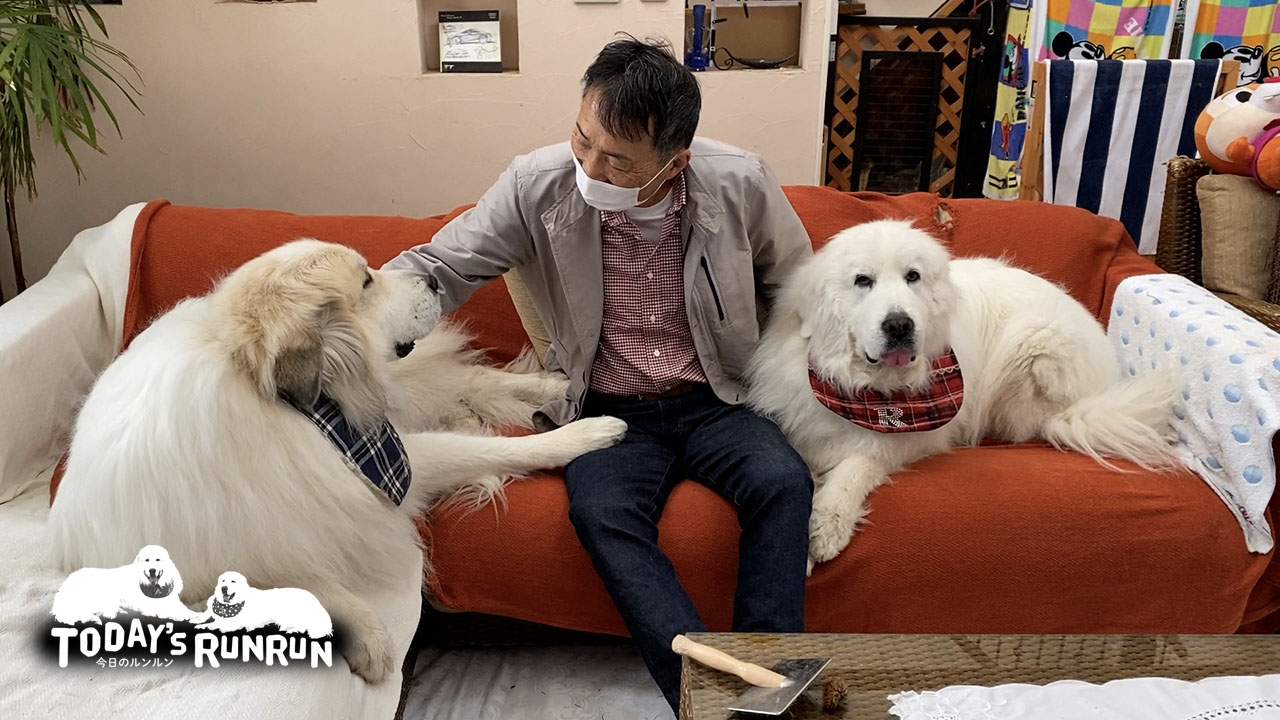 グレートピレニーズは比較的クールな犬種で、感情表現は控えめ。お父さんが3日ぶりに帰宅してもルンルンとアランはいつもと変わらないお出迎えでした。お父さんは必ず帰ってくるとわかっているのでルンルンとアランにとっては普段どおりの事だったのかもしれません。