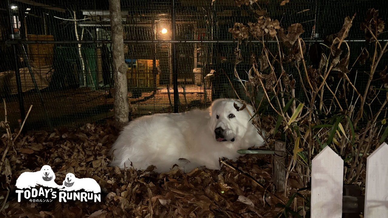 グレートピレニーズの最適温度は5度ぐらいと言われています。真冬になると氷点下になるため、ある程度は平気でも何時間も外にいると流石のルンルンも寒く感じる様です。今の時期は外気温が5度前後でルンルンにとっては快適なのかもしれません。
