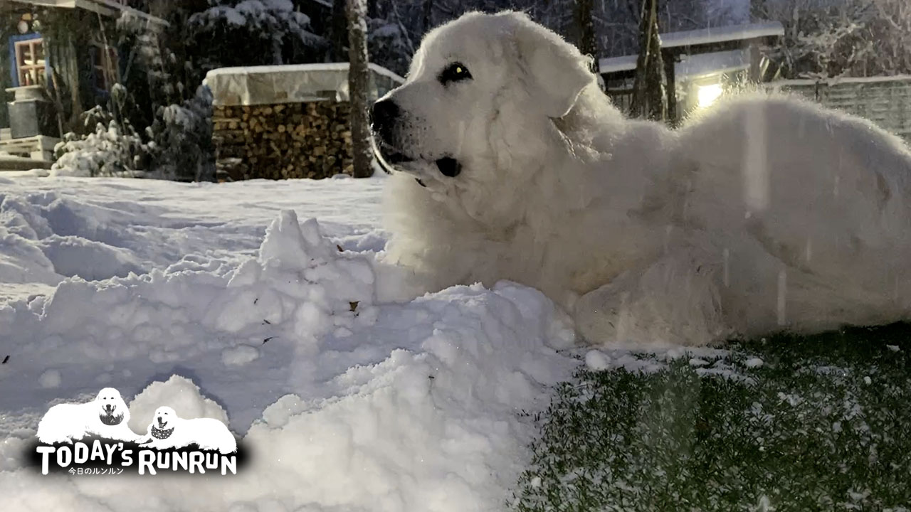 寒いのが得意なグレートピレニーズ。雪の降る日はなるべく外に居たいルンルンとアランです。