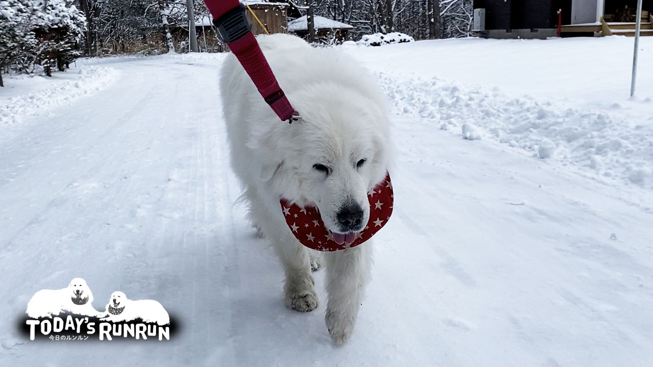 雪が降ったり止んだりするので合間をみてお散歩へ行ったルンルンとアランです。氷道でも引っ張らずお利口に歩けました。