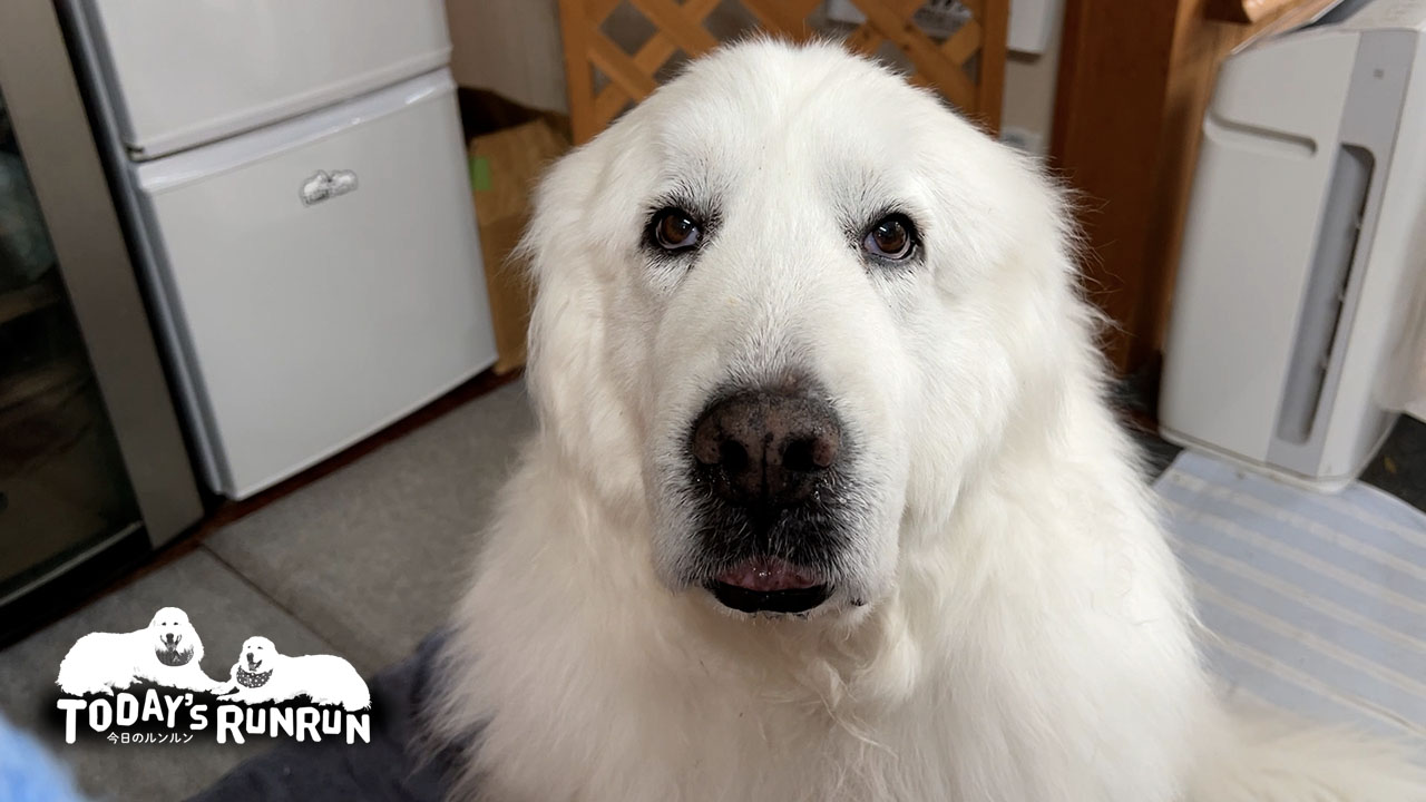 ダイエットのためおやつの量を減らされているルンルンとアラン。いつもおやつはキッチンでもらうので誰かがキッチンに入るとおやつの催促が始まります。騒ぐ事はせずにジッと目を見て座り込みをしておやつをねだるのがルンルンのスタイル。アランはルンルンの後ろでおこぼれを待っています。
