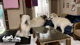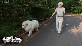 グレートピレニーズは独立心が強くあまり人間にベタベタしない犬種ですが、ルンルンは例外で人間に甘えるのがとても好きです。いつでも人間になでて欲しくて人間をみるとなでてと催促をします。ゴロリと人間の足元に転がり足の上に乗って動けなくさせてからなでてと催促をする戦略家です。