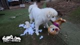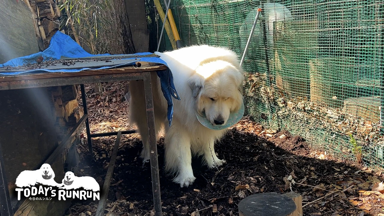 アランの穴掘りがなかなか上達しないところを見ると、一種の遺伝的な才能が必要なのかもしれません。体にピッタリ合う立派な穴を掘って気持ちよさそうに寝ているルンルンと、何だかうまく掘れなくてフカフカになった土に横になるアラン…同じグレートピレニーズでもそれぞれの個性が面白いです。