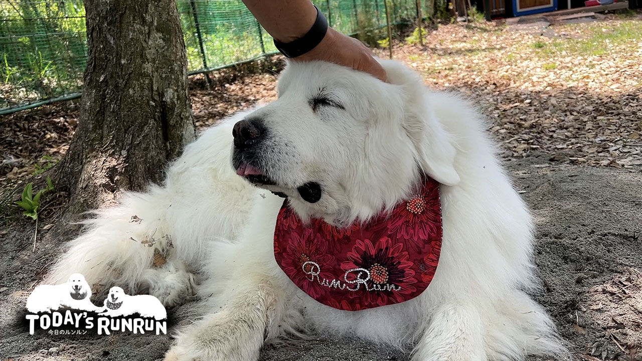 ルンルンはアウトドア派で日中もほとんど家に入りません。ドッグランの涼しいところを知っていて、だいたい決まった場所にいます。ルンルンのお気に入りの場所はお父さんが砂場を作ってあるためルンルンが庭でくつろぐとだいたい砂だらけになります。