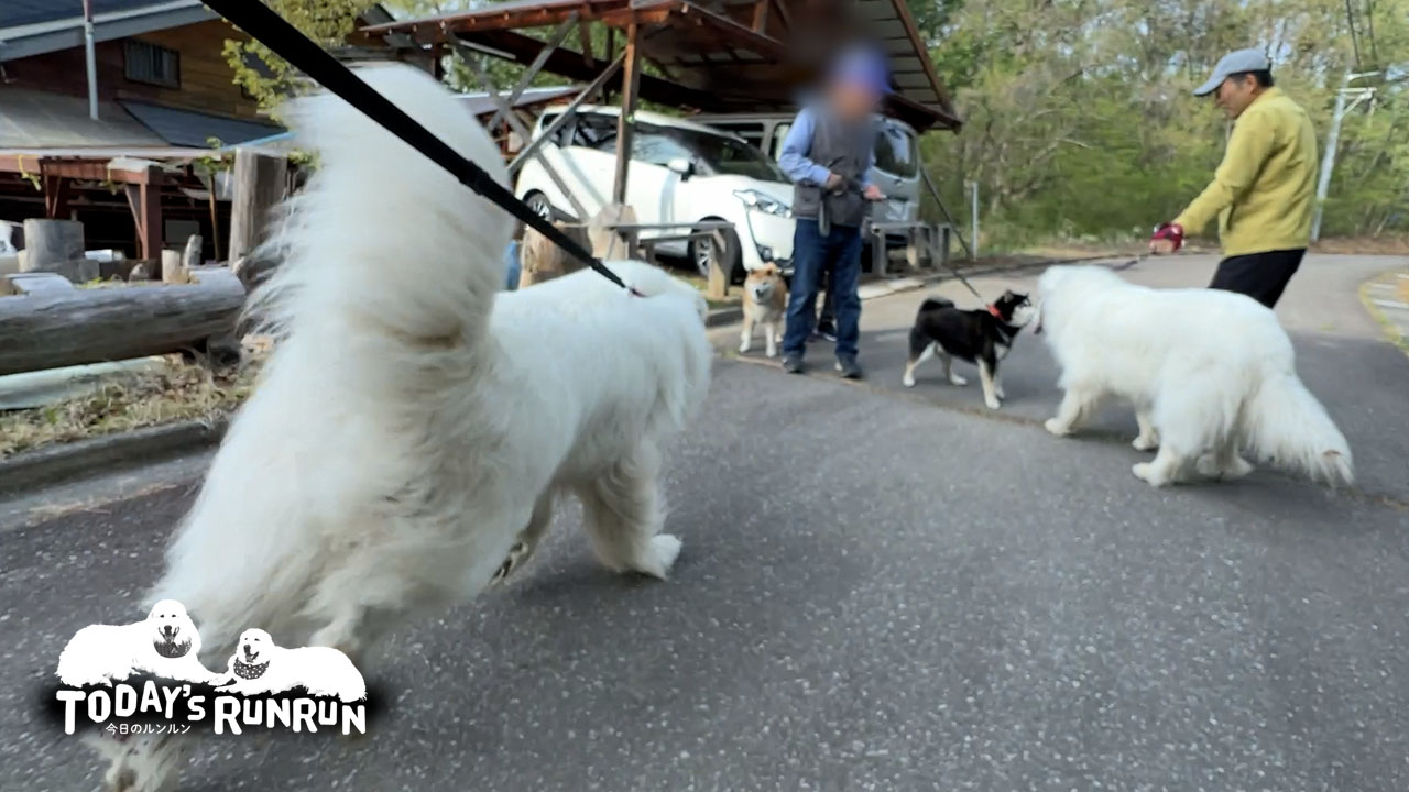 アランはベビーの時に我が家にきてルンルンが母親がわりに育てました。グレートピレニーズは複数頭で羊などの群れを統率するのが本来の仕事です。なので多頭飼いには適している犬種だそうです。アランにとってはルンルンは母親代わりでありボスでもあります。ルンルンが危険に晒される可能性がある時はアランが守っているようです。