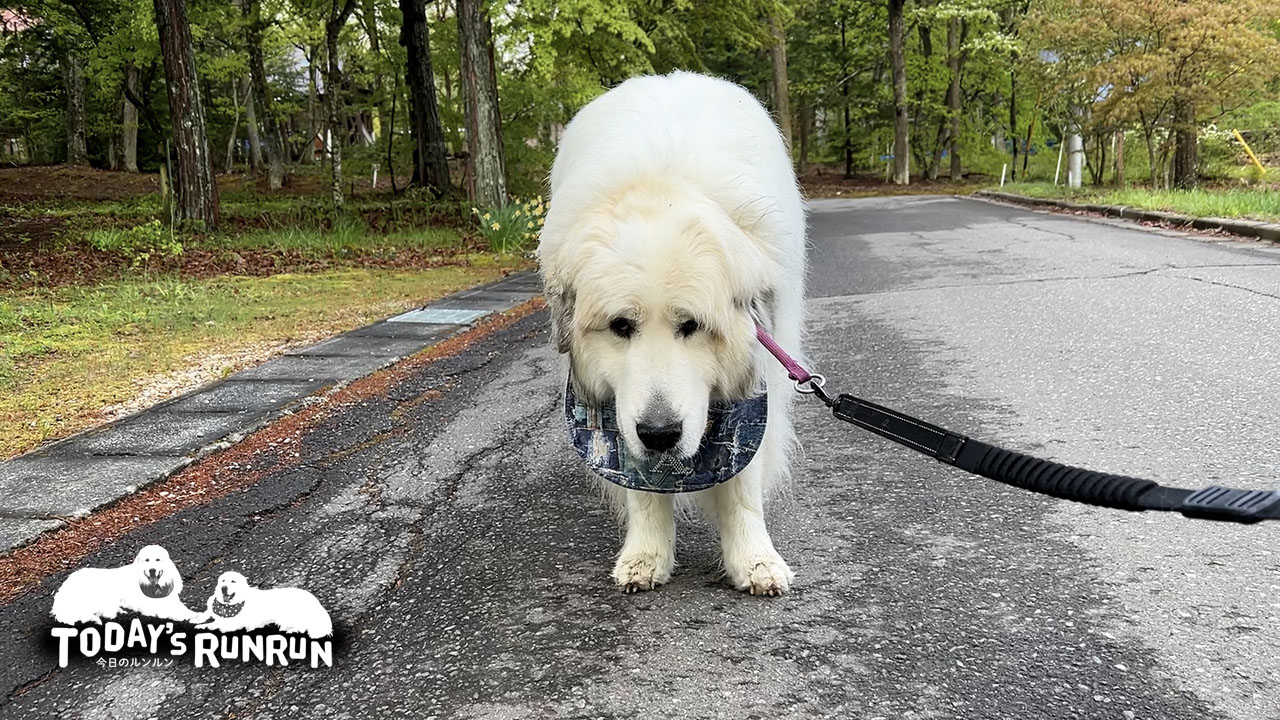 ルンルンはもう11歳なので散歩のペースはとてもユックリで、アランは普通に歩いていてもルンルンよりペースはかなり早めです。2頭引きだとどうしてもペースが合わず、ルンルンは少し無理して早足、アランはペースを送らせて歩くという具合になってしまうため、ルンルンはお父さん、アランは息子(格下)の今の状態の方がルンルンもアランも快適のようです。