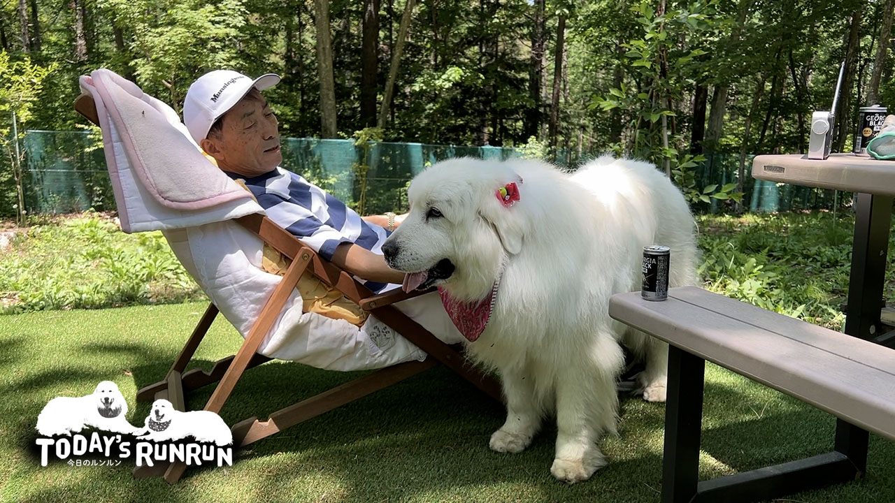 草刈りでドッグランから締め出されていたルンルンとアラン。草刈りが終わるとドッグランでのんびりくつろぎました。