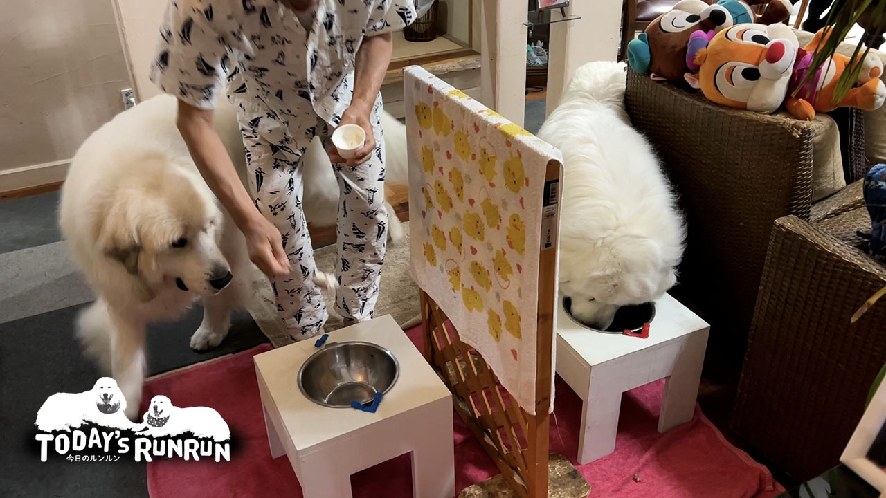 早々に梅雨が明けてしまいとても暑いルンルン地方。以前いただいた犬用アイスクリームが残っていたので、美味しく食べたルンルンとアランです。