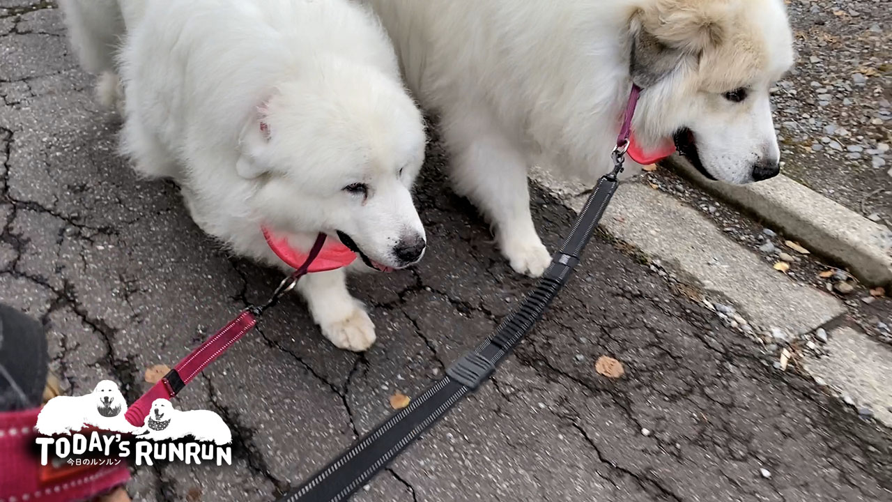 11歳といえどグレートピレニーズのルンルンが本気になれば息子(格下)ですら引っ張られてしまうほどパワーがあります。性格的にはアランよりも活発でちょっと威張っているルンルン。まだまだアランにボスの座を譲る気はなさそうです。