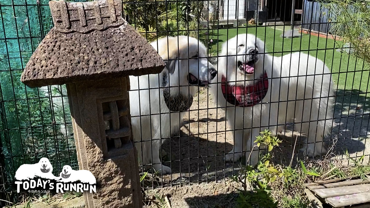 ルンルンとアランは最初は町の家に住んでいました。週末だけ山の家に移動するという生活でしたが、アランが大きくなり町の家では手狭になったため山の家にドッグランを作り生活の拠点を山の家に移しました。ルンルンは元々町の家にいたため、町の家はほとんどがルンルンの縄張りでアランは少し遠慮をしているようです。