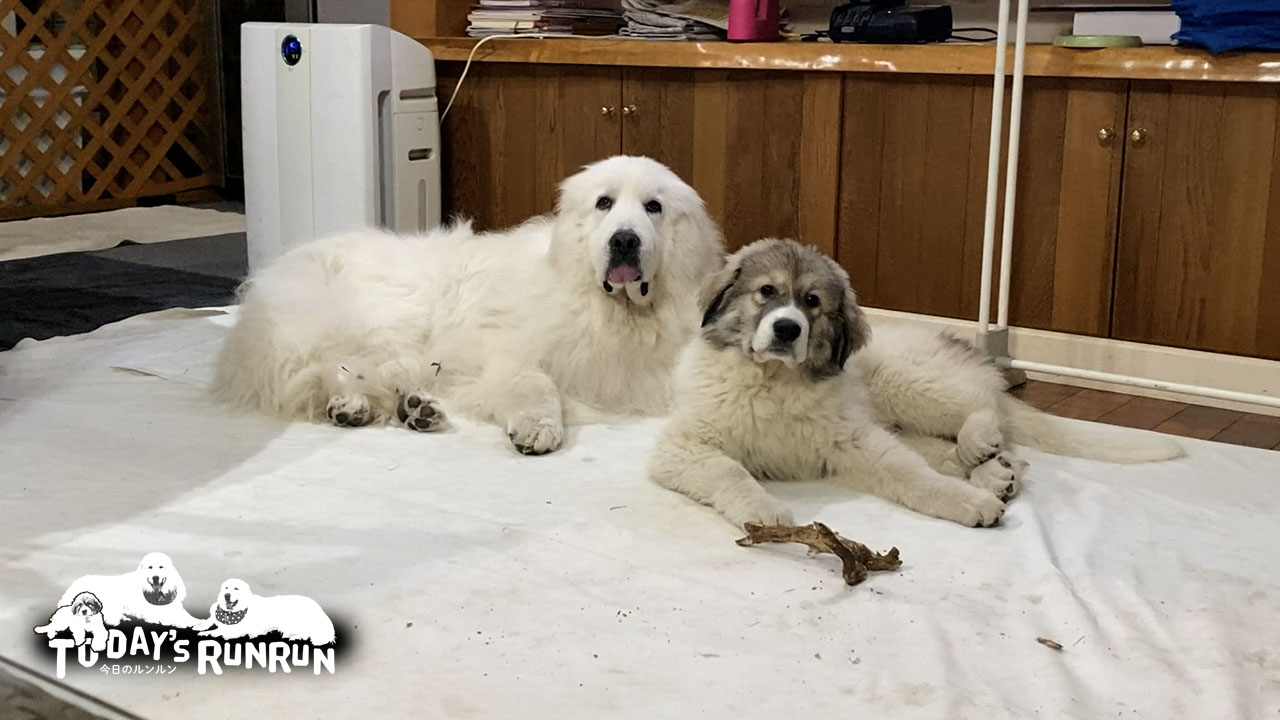 一方でアランはベルの遊びによく付き合ってあげています。ベルがあまりにも元気すぎるので若干アランもイヤイヤ感はありますが、強く怒ったりマウントしたりという事も無く淡々とワンプロをしています。遊ぶ時はアランが相手をし、リラックスする時はルンルンが寄り添う…ルンルンとアランの連携でベルはスクスクと育っています。