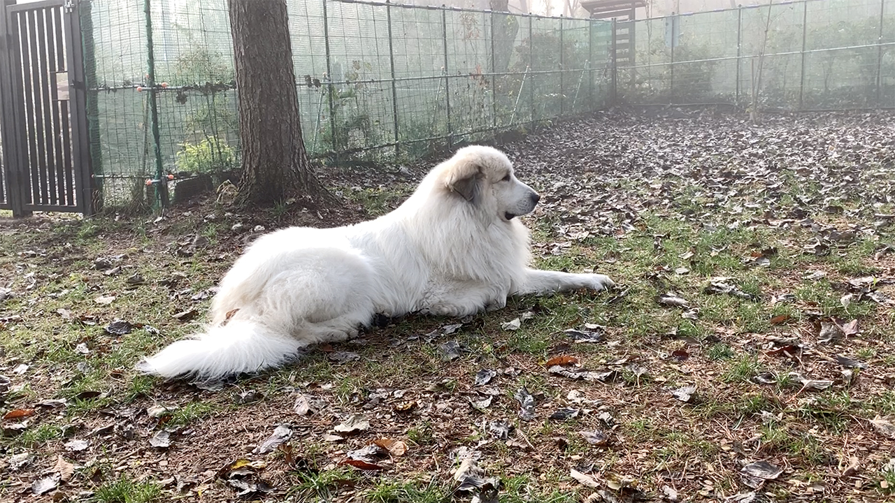 霧の濃い朝でした。イタズラしたり番犬したりするアランですがルンルン不在のせいか少し寂しそうです。