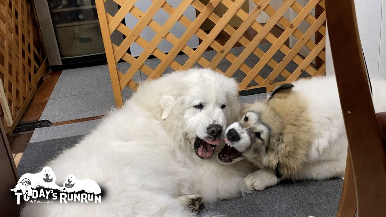最初は加減がわからなかったベルですが、ルンルンとアランに怒られたりしているうちに段々と距離感を保つようになってきました。まだ子犬なのでテンションが上がるとしつこく絡んでしまいますが、2~3ヶ月前と比べるとだいぶベルなりに相手をみながら加減しているように見えます。