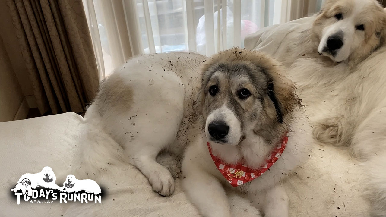 シャンプーへ行ってフワフワになったベル。が、数時間後には泥だらけになってしまいました…本人は気にしていない様子…