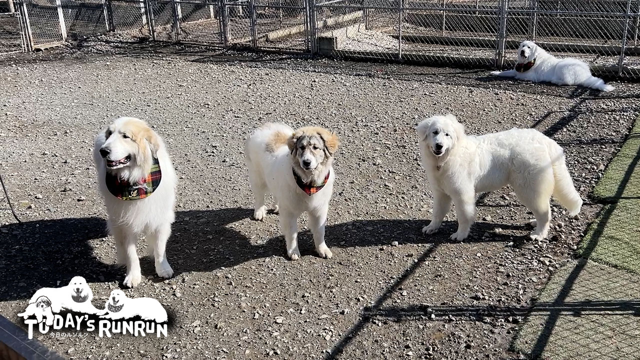 ベルの体重は33kgほどになり38kgのルンルンの体重に迫っています。ルンルンはグレートピレニーズとしては小さい方で、アランは逆に大柄です。ベルはアランの子どもなのでルンルンよりは大きくなるかもしれません。