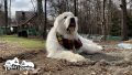 ルンルン地方の春は遅く春めいてくるのは4月に入ってからです。人間にはまだ少し肌寒い季節ですが、寒いのが得意なグレートピレニーズのルンルンにはちょうど心地よいようです。グレートピレニーズの最適温度は5℃ぐらいだそうです。ルンルン地方は日中10℃ぐらいの陽気で、朝夕は3〜5℃程度なので、ルンルンには一番快適な温度のようです。