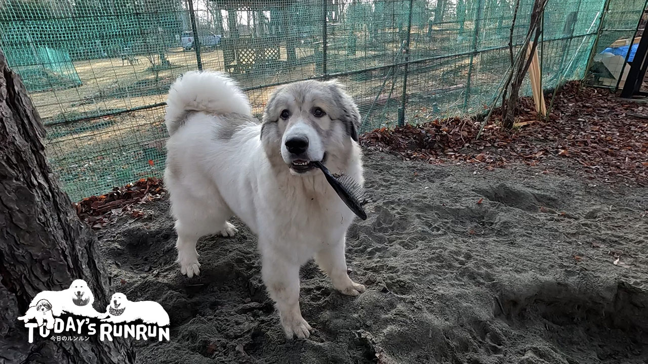 ブラッシングよりも鬼ごっこで遊びたかったベル。自分の番になる前にクシを持ち出して逃げ回りました。