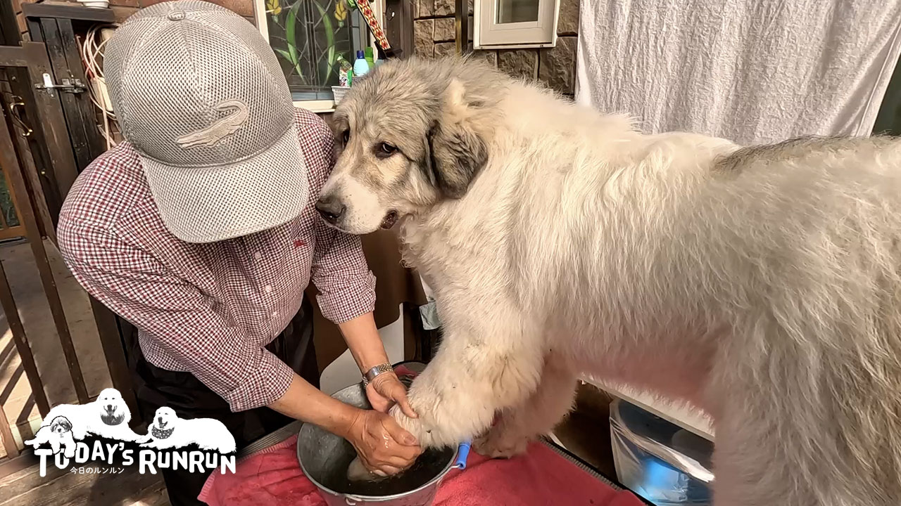 朝のブラッシングは遊びたくてソワソワ落ち着かないベル。お父さんだけだと比較的お利口にブラッシングを受けるのですが、遊び相手の息子(格下)がいると早く遊びたくてソワソワしてしまうようです。ブラッシングが終わると手袋をもらってダッシュがルーティンです。