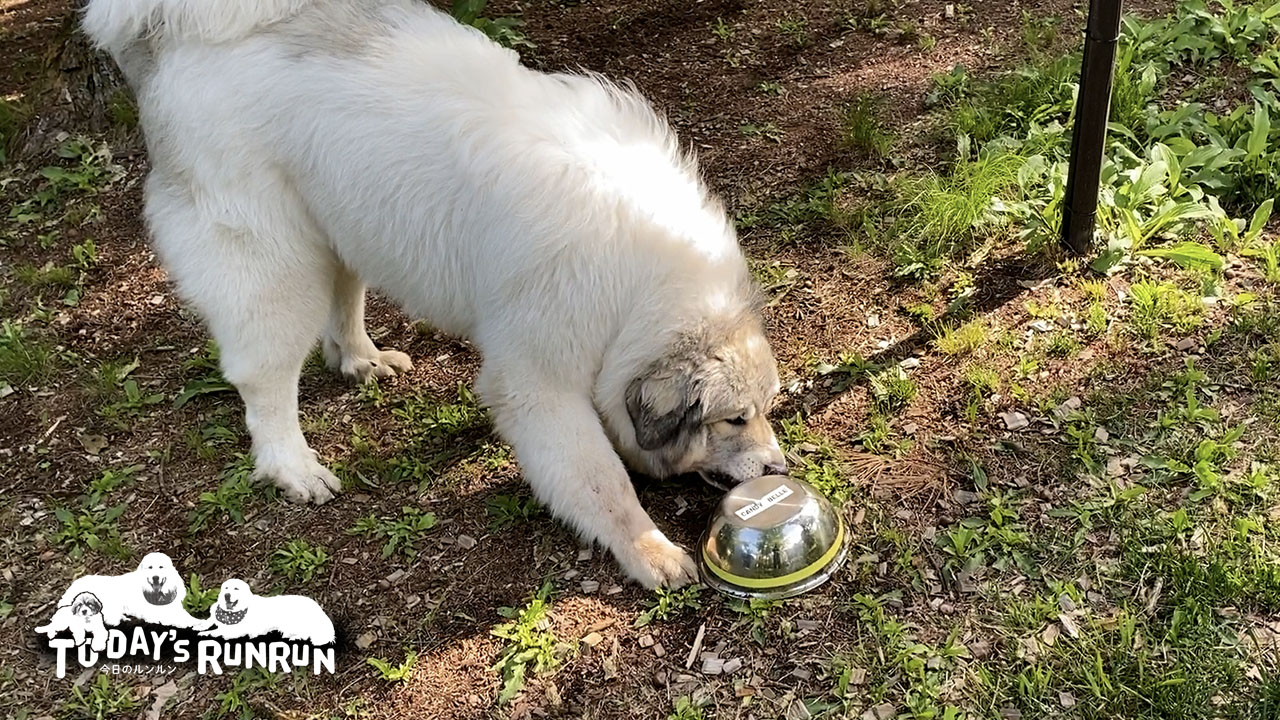 ボールは金属製で滑るので逆さまに地面に落ちてしまうとベルではなかなか持ち上げられず思わぬ苦戦を強いられたベル。なかなか思い通りにくわえる事ができずワチャワチャしていました。抜け目なく頭の良いベルですが金属製のボールの扱いにはまだ慣れていないようです。