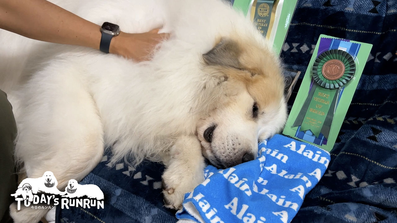 アランのドッグショー遠征で一週間ひとりだったルンルン。ショー当日はお母さんとお留守番をしていました。お母さんにご飯をもらい、お母さんに犬舎から出してもらい、お母さんとふたりで散歩をしました。