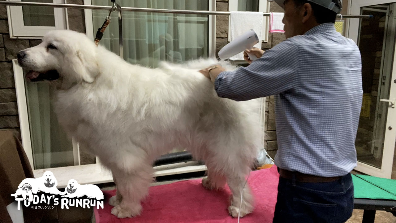 梅雨真っ只中で天候が優れないルンルン地方。散歩中に突然の雨に打たれる事もしばしば。グレートピレニーズはダブルコートの長毛種なので濡れてしまうと乾かすのが大変です。最近ベルがあまりにも汚れ、足を洗う機会が増えたのでトリミングスペースにドライヤーを導入しました。とりあえず市販品ですが業務用の設置も検討中です。