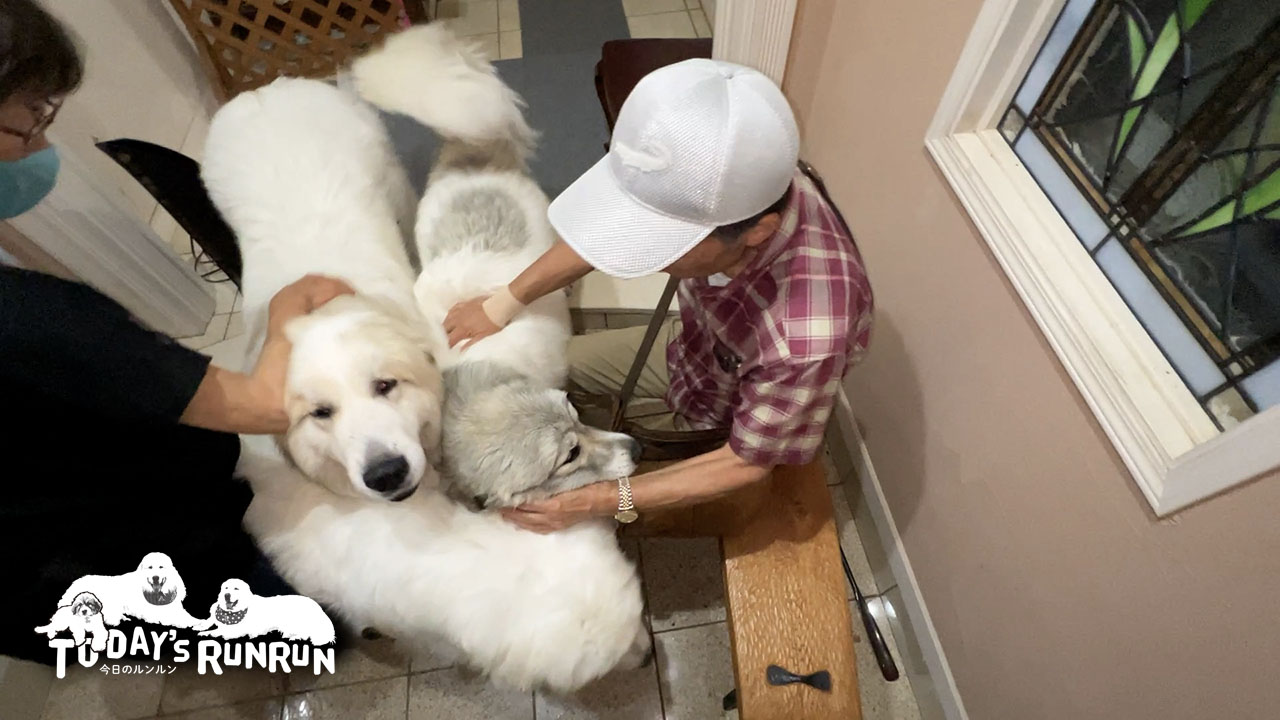 人間が戻ってくるとアランとベルはドアのところまで来て扉が開くと同時に出てきます。やはりお父さんの帰宅が嬉しいようで、お父さんが玄関に入るとルンルンとアランとベルで玄関は大渋滞です。ベルももう少しすればお留守番とお出かけの区別がつくようになると思います。お留守番の後はお父さんにたっぷり甘えるのがルーティン。お利口にしていた分だけたくさん撫でてもらいます。