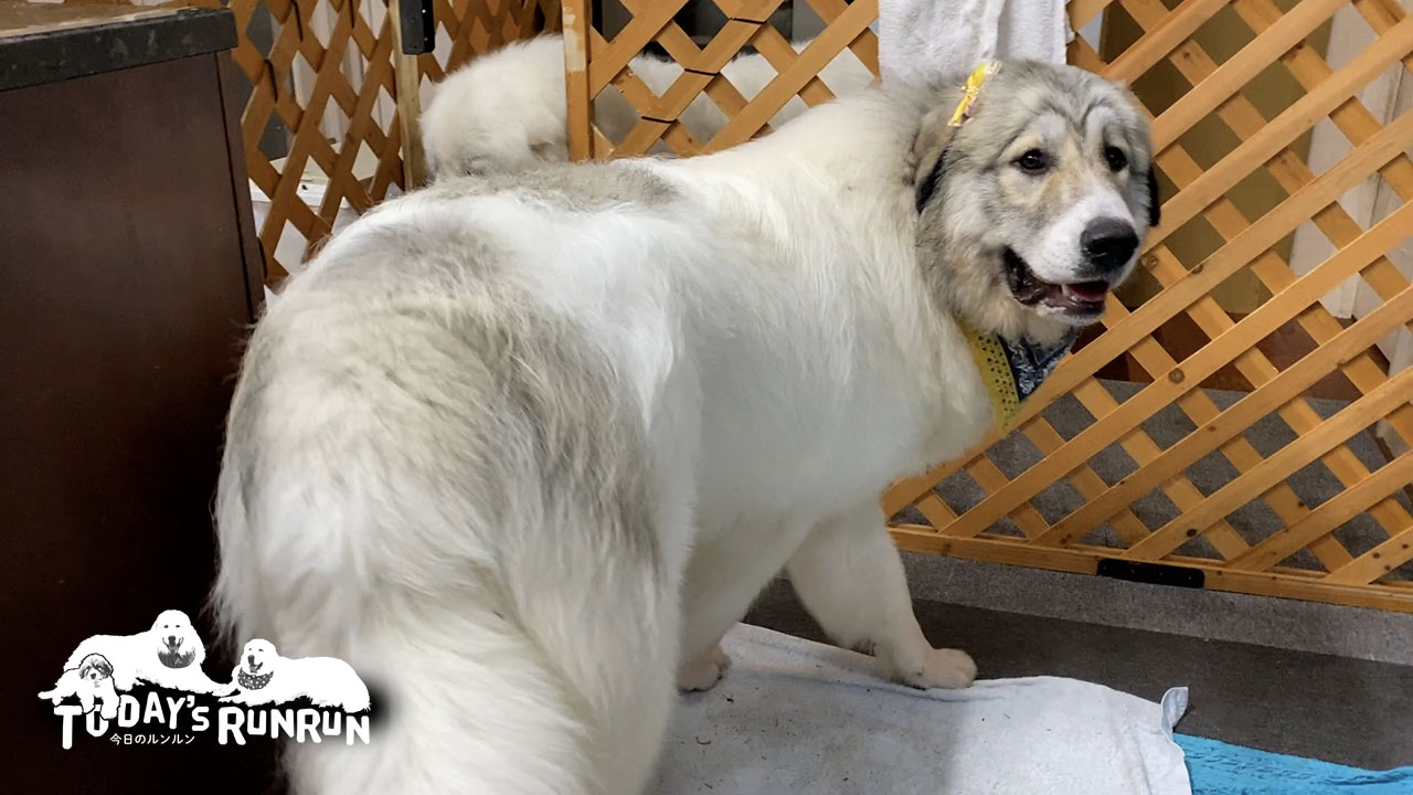 アランはみんなでお留守番だとおとなしくお留守番をしますが、ルンルンかベルのどちらかがお父さんと一緒に出かけるとなると自分も行くと駄々をこねます。行くスイッチが入ると玄関外のスペースで踏ん張って座り込みをするアラン。アランがその気になれば人間の力では動かせず、最終的にアランも一緒に行きました。