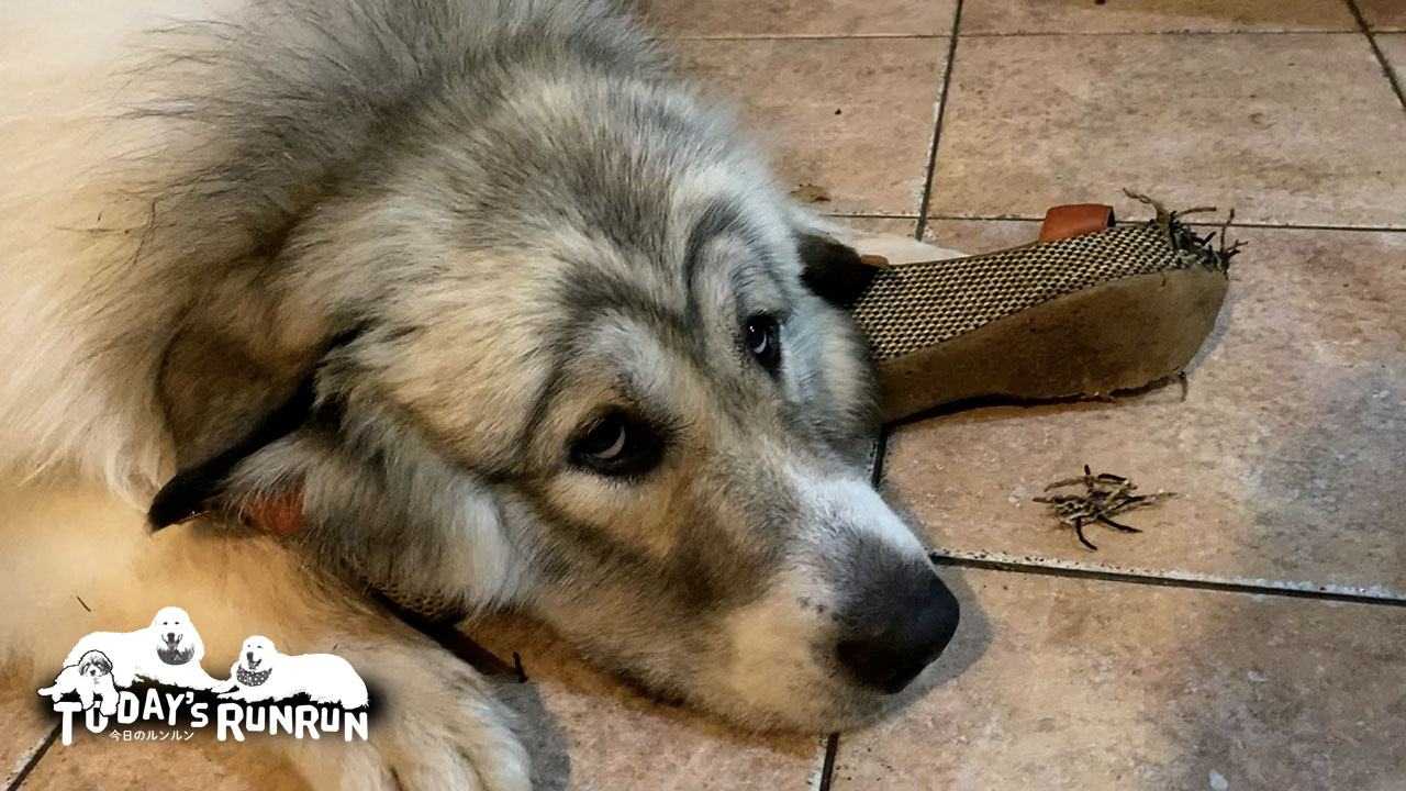 ルンルン家では玄関に履物を脱ぎっぱなしにするのはとても危険!かつてはアラン、今はベルがあっという間にどこかへ持って行ってしまいます…ルンルンはそういう事は一切しなかったので、アランの血統がイタズラ好きなのかもしれません。