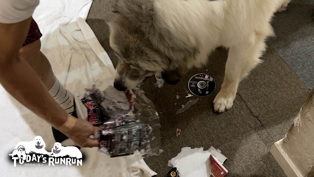 ベルはいつも家の中を探索しています。四六時中常にアンテナを張っているため、ベルに壊されたくない物はベルの手の届かない所へ隠すしかありません。DVDの入っていた箱は今まで知らんぷりだったのに、今回のように急にいたずらしだしたりするので、今まで手を出さなかった物も油断できません!