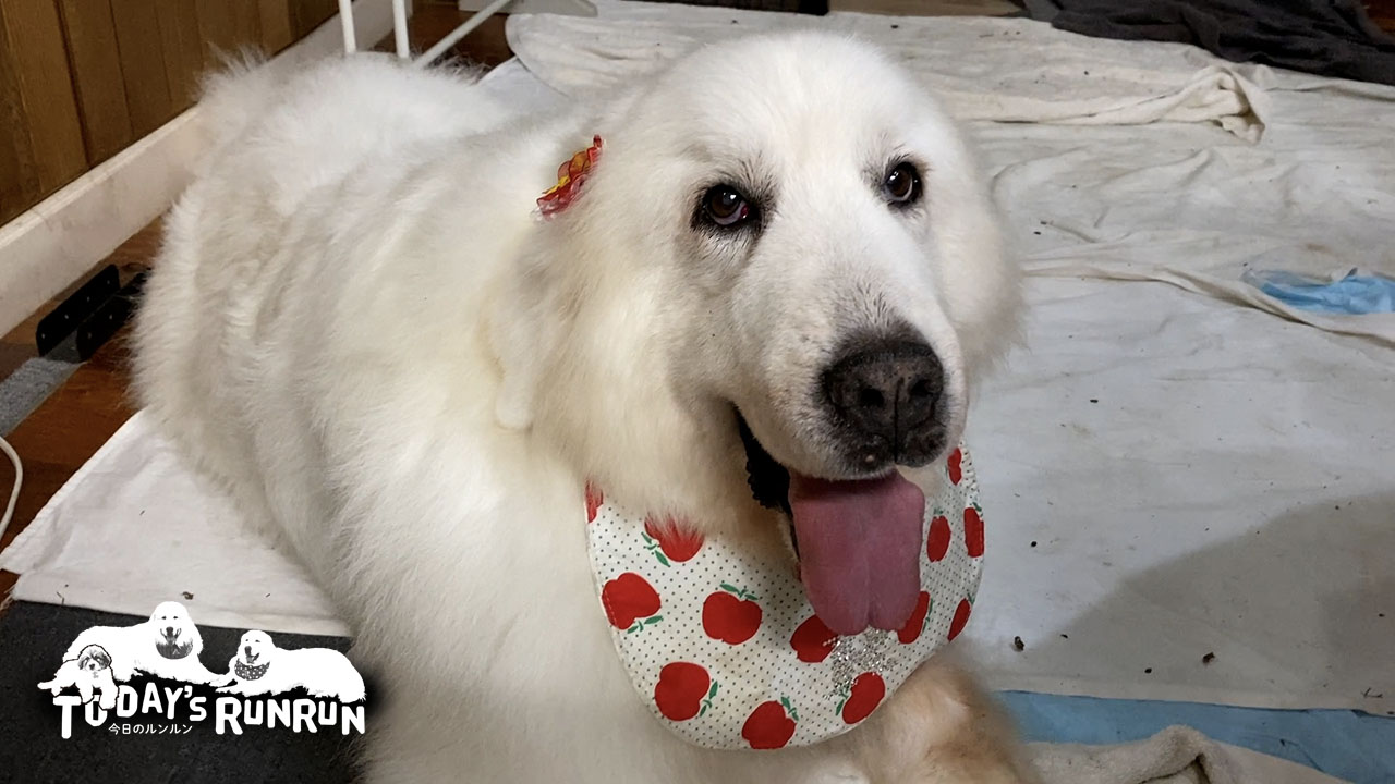 シャンプーを頑張って真っ白フワフワになったルンルン。シャンプーは体力を使いますがまだまだ平気のようです!