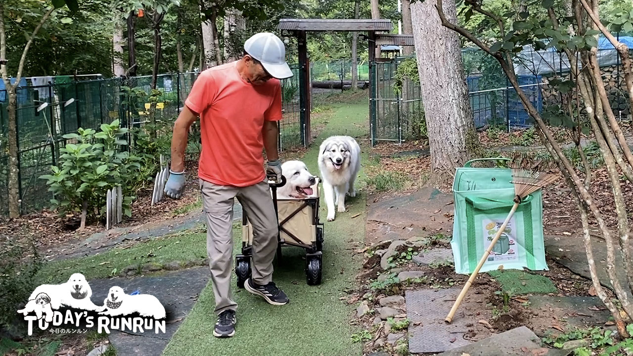 毎日元気に歩いているルンルンですが長距離の移動は体力的に厳しい時があります。本格的な大型犬用の介護カートはすでに購入済みなのですが、ルンルンはまだ本格的な介護カートに乗るほどではないので、お父さんがホームセンターで適度なカートを買ってきてくれました。名付けてルンルン号ミニです。