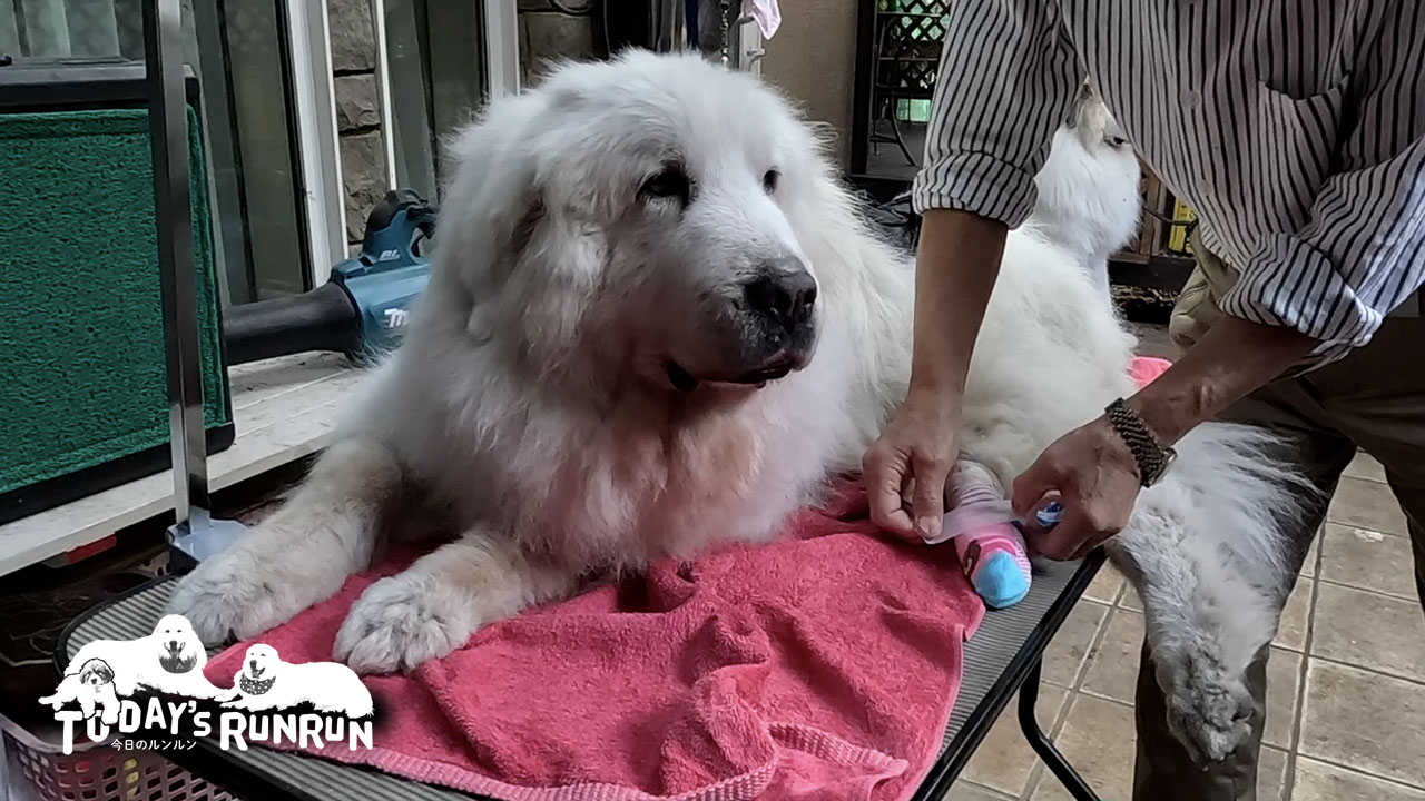 後ろ足が悪く引きずって歩いてしまうルンルン。引きずって歩くと足が擦り切れてしまうため靴下を履いています。靴下はお父さんが買ってきたり、いただいた品がたくさんあるため毎日日替わりで履き替えています。足が不自由ながらもルンルンはけっこう歩き回るため靴下は1日でボロボロになってしまいます…