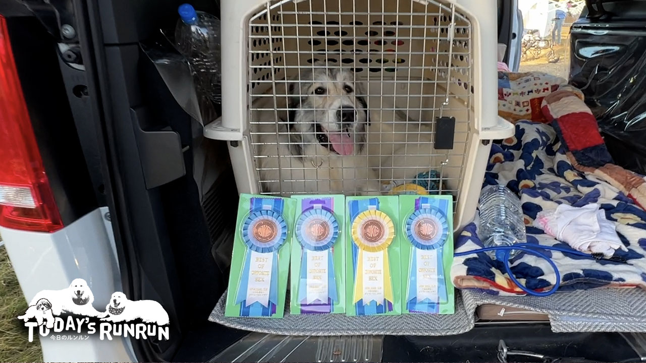 2週間ぶりに家族と会い大興奮のベル。ルンルンとアランも嬉しそうでした。ベルはドッグショーでの活躍が認められJKCチャンピオンの称号を得ました。1歳4ヶ月でのチャンピオン完成です!